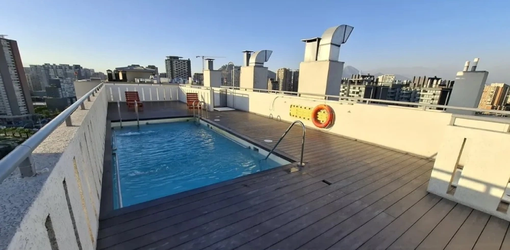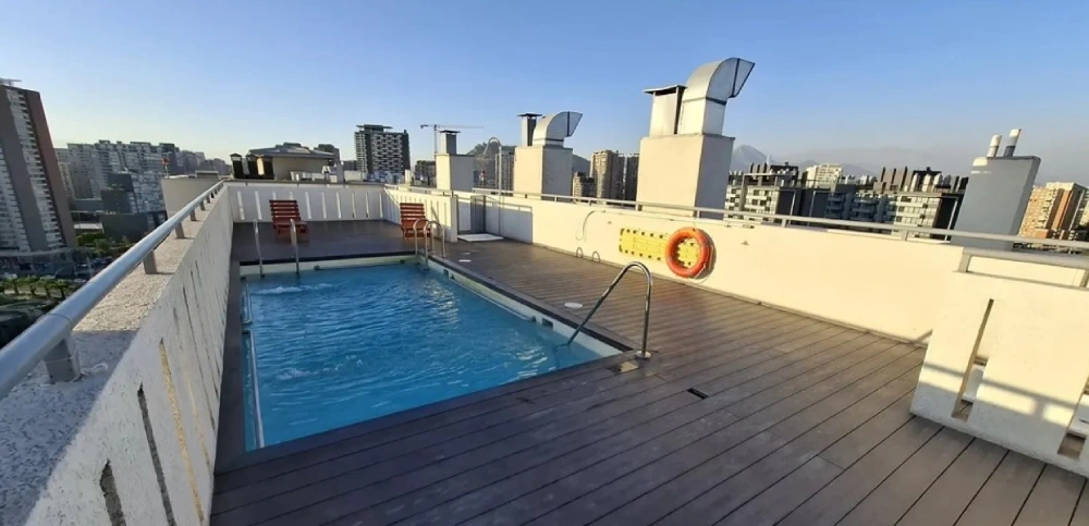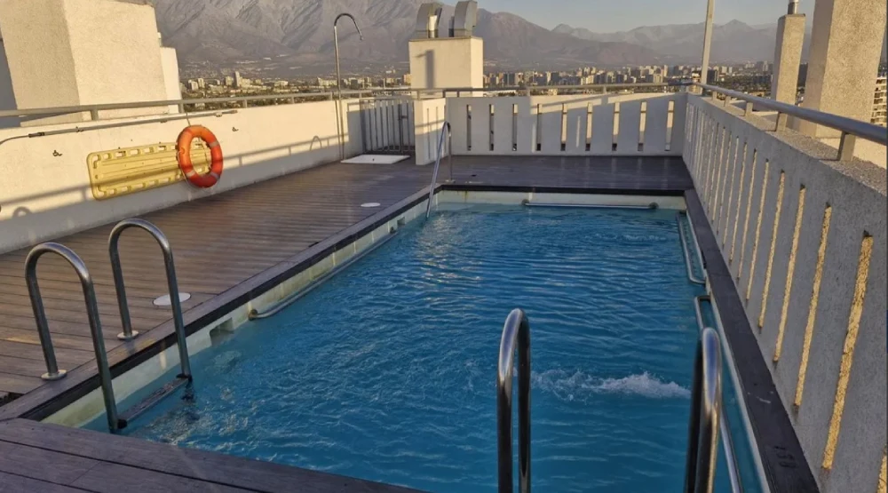 – Piscina panorámica con vista a la ciudad y la cordillera